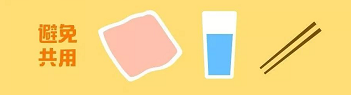 ?、莛B成打噴嚏或咳嗽時用紙巾或袖肘遮住嘴巴、鼻子的習慣。盡量避免用手觸摸眼、鼻、口。